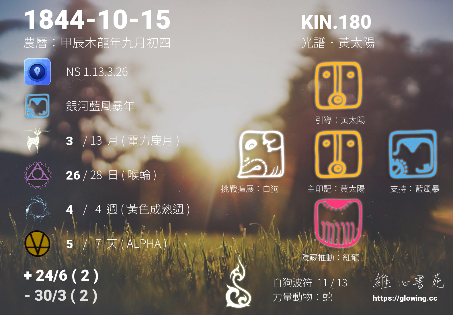 我們可以稱 KIN 180 為 【光譜黃太陽】 、 【光譜的黃太陽】 、 【白狗波符 之 光譜黃太陽】 也可以是 【光譜黃太陽.白狗波符】 ,你比較喜歡哪一個稱號呢?