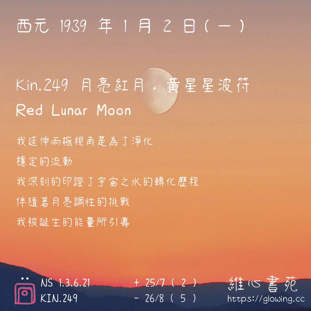 我們可以稱 KIN 249 為 【月亮紅月】 、 【月亮的紅月】 、 【黃星星波符 之 月亮紅月】 也可以是 【月亮紅月.黃星星波符】 ,你比較喜歡哪一個稱號呢?