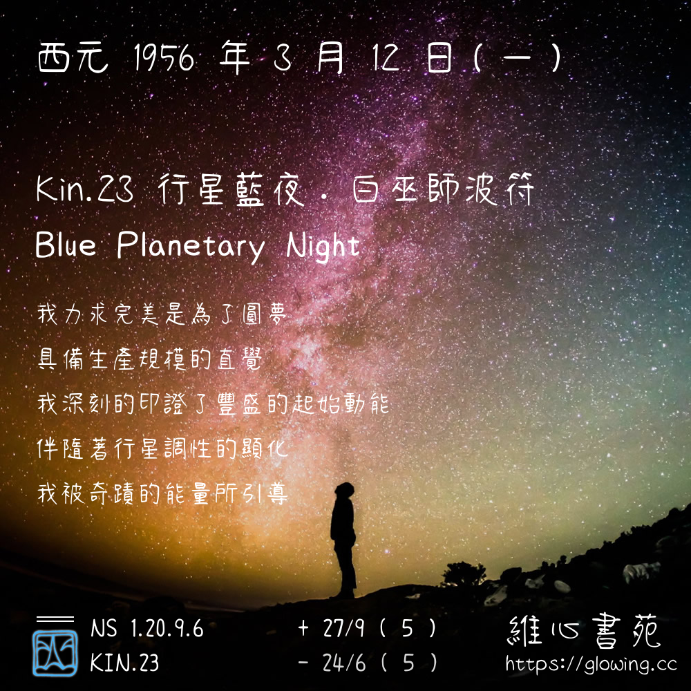 我們可以稱 KIN 23 為 【行星藍夜】 、 【行星的藍夜】 、 【白巫師波符 之 行星藍夜】 也可以是 【行星藍夜.白巫師波符】 ,你比較喜歡哪一個稱號呢?