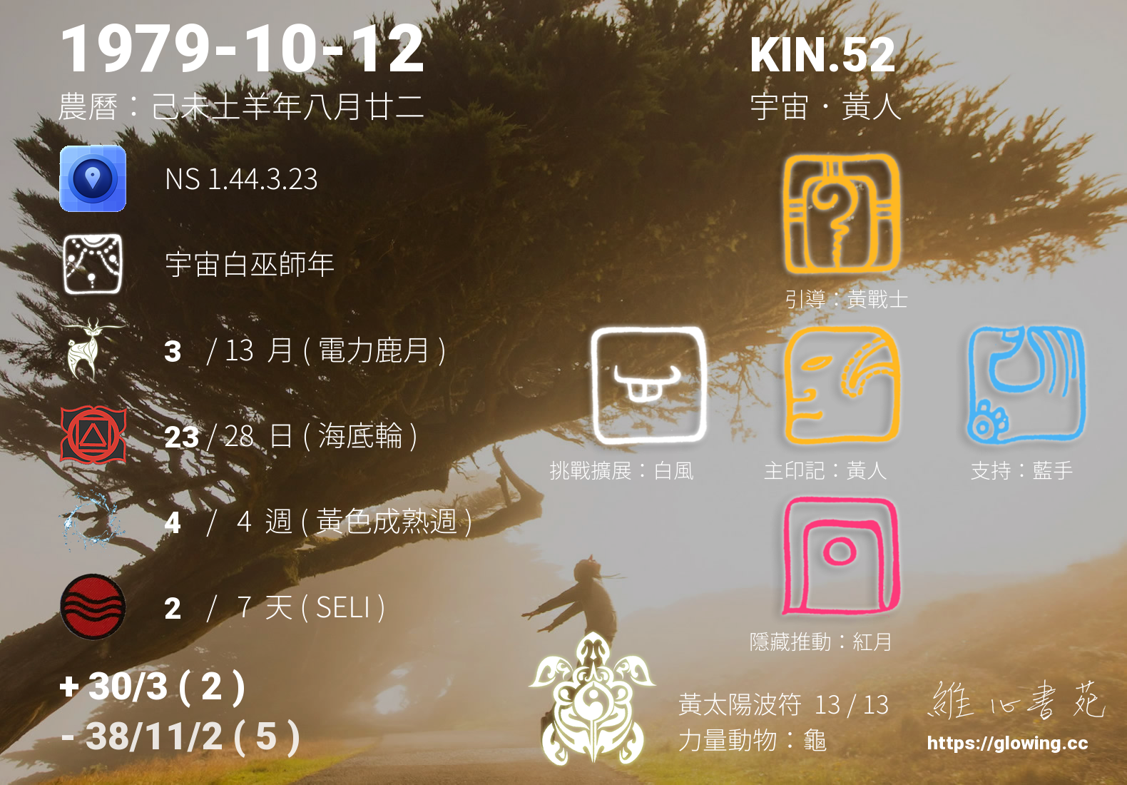 黃人的引導依據KIN的調性不同會有五種可能性,KIN.52的引導圖騰是黃戰士 , 黃戰士引導著我們勇敢無懼地去實現夢想,所有的夢想都需要時間去成就,在一步步的突破中我們需要無比的勇氣,黃戰士的無畏提供我們滋糧,讓我們堅實挺立不畏風霜,終將取得豐碩的成果。