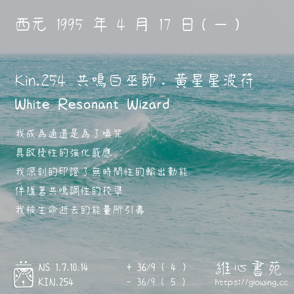 我們可以稱 KIN 254 為 【共鳴白巫師】 、 【共鳴的白巫師】 、 【黃星星波符 之 共鳴白巫師】 也可以是 【共鳴白巫師.黃星星波符】 ,你比較喜歡哪一個稱號呢?