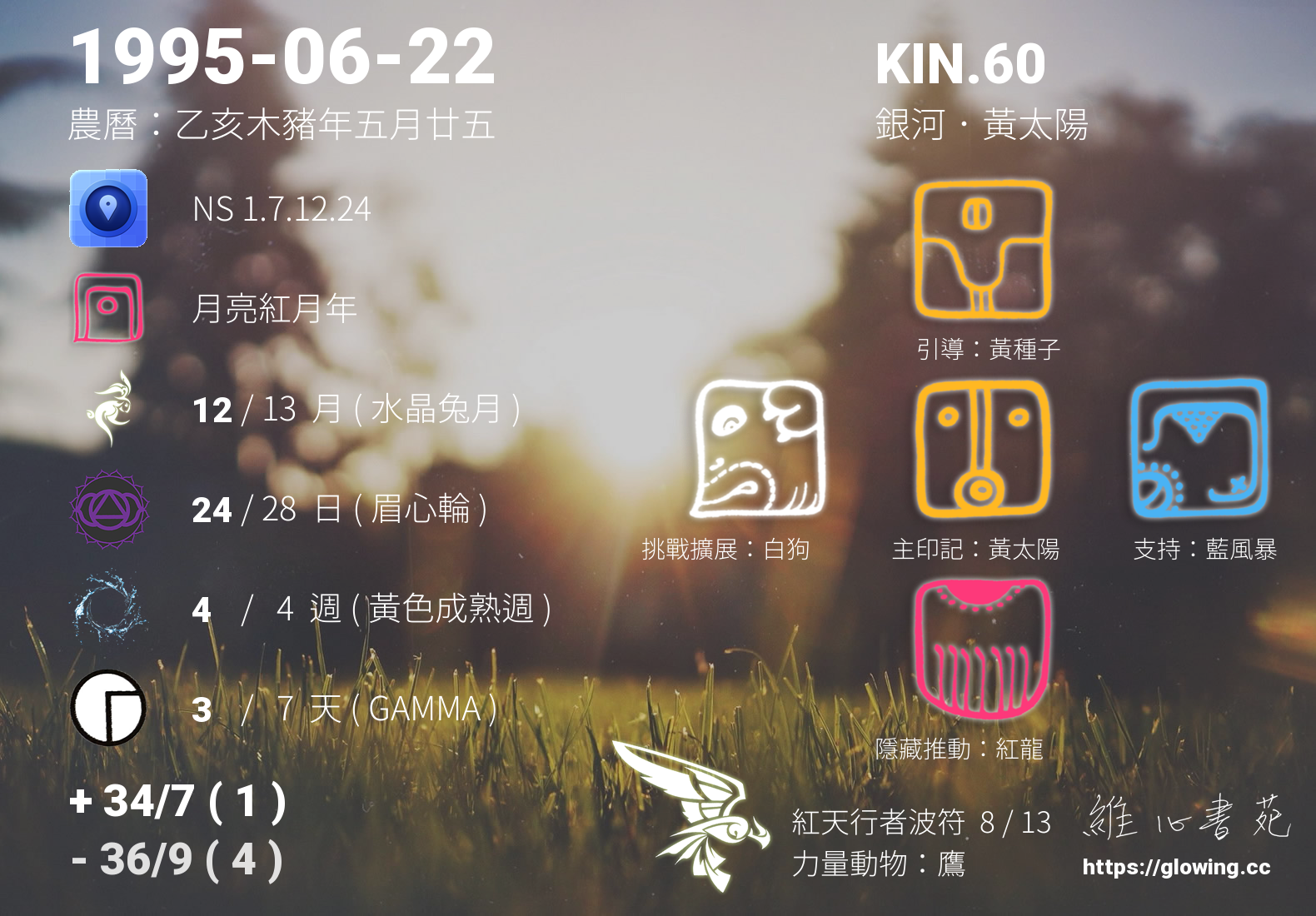 黃太陽的引導依據KIN的調性不同會有五種可能性,KIN.60的引導圖騰是黃種子 , 在黃種子的引導下,我們誠心的感謝所有的希望是無限的榮耀,沒有什麼是不可能的實現,因為愛在種子中就會發芽,沒有什麼是不被祝福的,全然的希望帶來全然的愛,全然的愛造就無限的希望。
