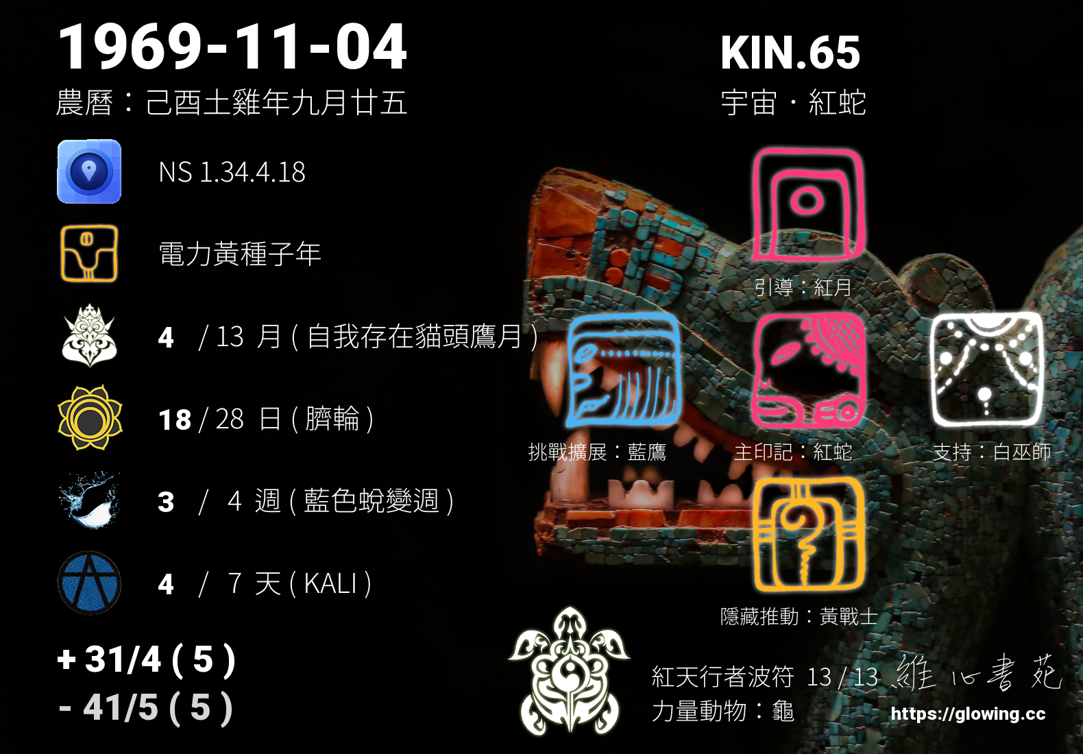 我們可以稱 KIN 65 為 【宇宙紅蛇】 、 【宇宙的紅蛇】 、 【紅天行者波符 之 宇宙紅蛇】 也可以是 【宇宙紅蛇.紅天行者波符】 ,你比較喜歡哪一個稱號呢?