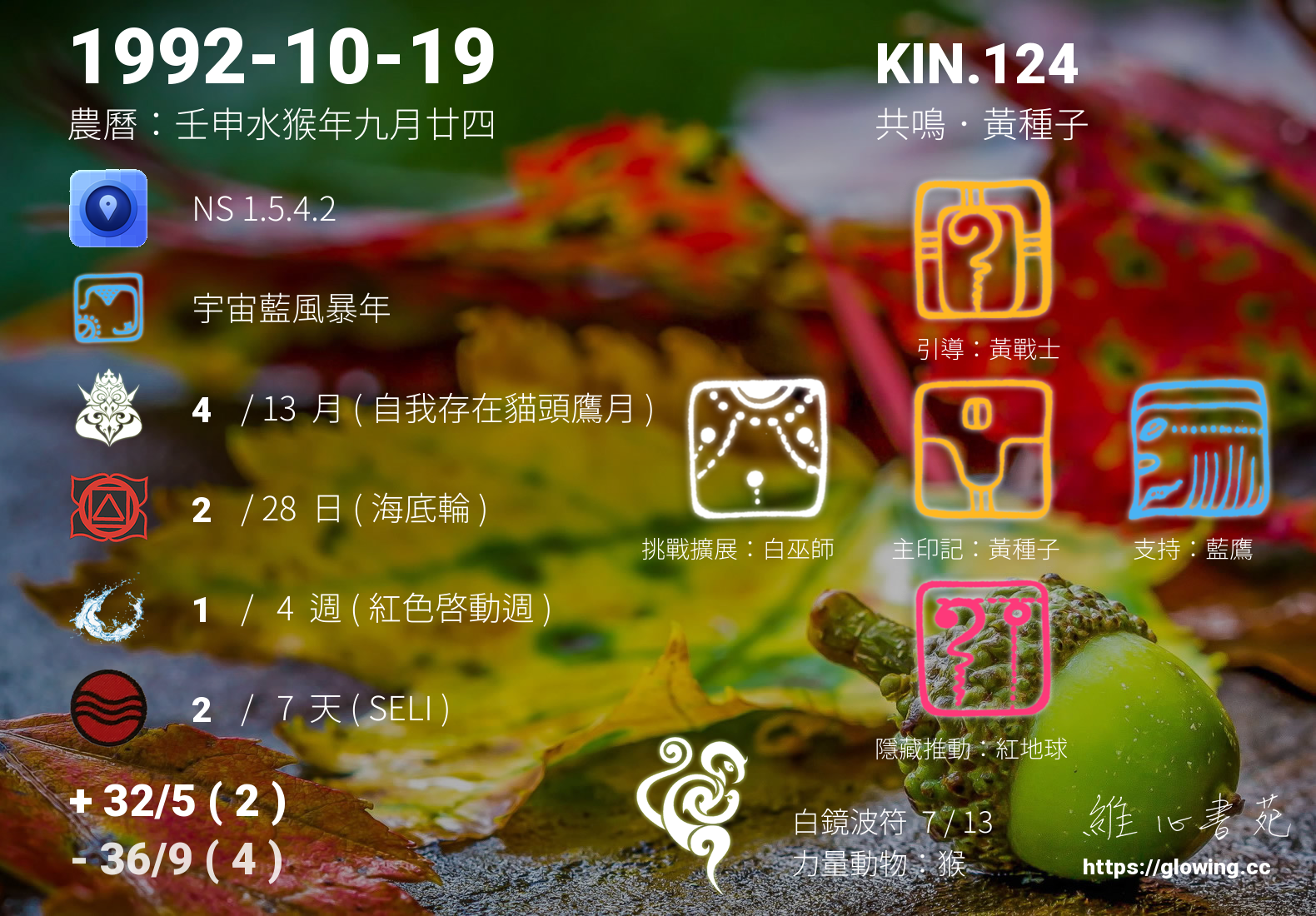 我們可以稱 KIN 124 為 【共鳴黃種子】 、 【共鳴的黃種子】 、 【白鏡波符 之 共鳴黃種子】 也可以是 【共鳴黃種子.白鏡波符】 ,你比較喜歡哪一個稱號呢?