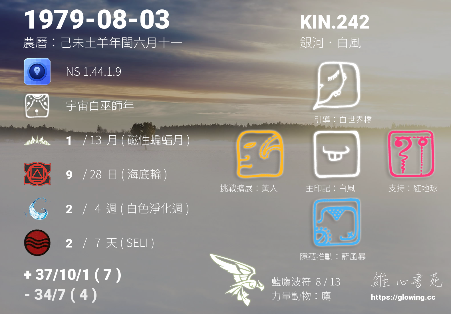 KIN.242 位於 藍鷹波符 13 天中的第 8 天,銀河音階為調性 8